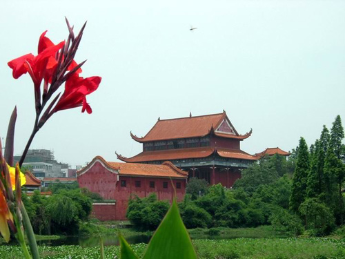 盤王是瑤族人民的始祖。瑤族人民每到一地都要建立盤王殿,以紀(jì)念先祖。江華瑤族進(jìn)入縣境后,曾立有數(shù)座盤王殿,但風(fēng)雨剝蝕,早已毀壞。后來(lái)根據(jù)瑤族人民的意愿,將原建于姑婆大山中的盤王殿遷建于縣城沱江鎮(zhèn)。遷建的盤王殿,坐落在風(fēng)景秀麗的平頭巖公園內(nèi),地勢(shì)依序?yàn)榈汀⒅、高三?jí),與平頭巖相對(duì)應(yīng)。