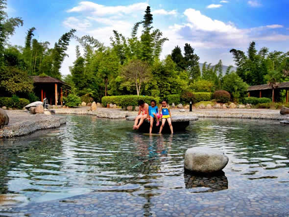 熱水溫泉,位于湘、粵、贛三省交界的熱水鎮(zhèn),是我國南方水溫最高,流量最大,水質最好,熱田面積最寬的天然溫泉。熱水水溫一般為 91.5℃,最高達98℃。熱泉水無色透明,稍有硫化氫氣味,為低礦化、低硬度、高溫弱堿性重碳酸、硫酸-鈉型氟及硅質礦泉水,含硅、鈉、鉀、鈣、鍶、硼、氟、氡等三十多種對人體有益的元素。其中“氡”元素正常情況含量30IMA即可做為生殖系統(tǒng)輔助治療藥物,根據(jù)聯(lián)合國教科文組織官員實地考察,福泉山莊熱泉水“氡”含量達到了130IMA左右,對治療不孕不育的生殖系統(tǒng)疾病有較好的輔助治療效果。