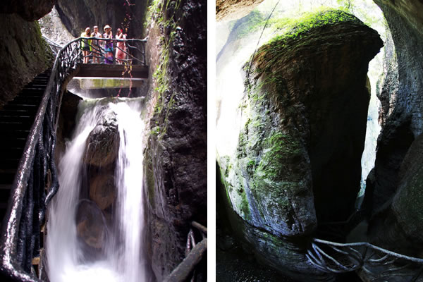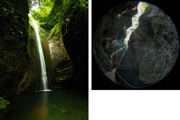 走在吊橋中間,必須保持自身的平衡方能安全通過,不然就會在吊橋上搖擺不定。走出仙女峽谷,往下看,深不見底,七潭七瀑在奇險(xiǎn)之中不乏壯觀,這里曾發(fā)生過跳潭救女的故事。