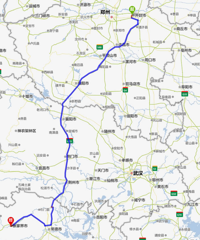 開封去張家界自駕車自助游線路圖全程高速):