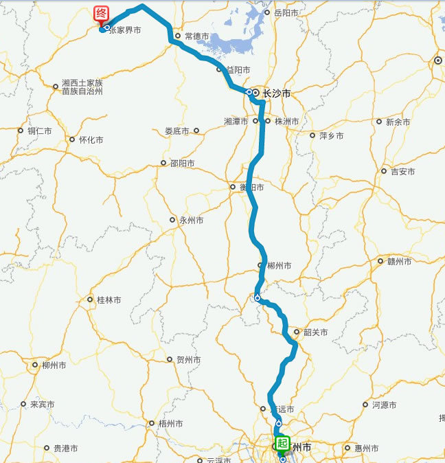 現(xiàn)在位置:張家界旅行社->交通指南->自駕車路線 -> 番禺到張家界旅游自駕車線路,番禺去張家界自己開車要多長時(shí)間,有多少公里