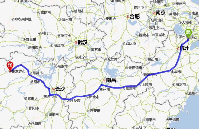 嘉興去張家界自駕車自助游線路圖全程高速):