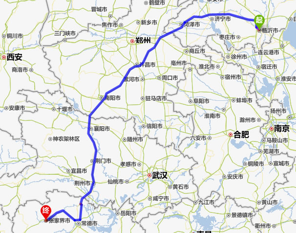 臨沂去張家界自駕車自助游線路圖全程高速):