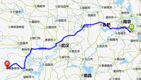 溧陽(yáng)市到張家界自駕車(chē)旅游線路(距離最短)