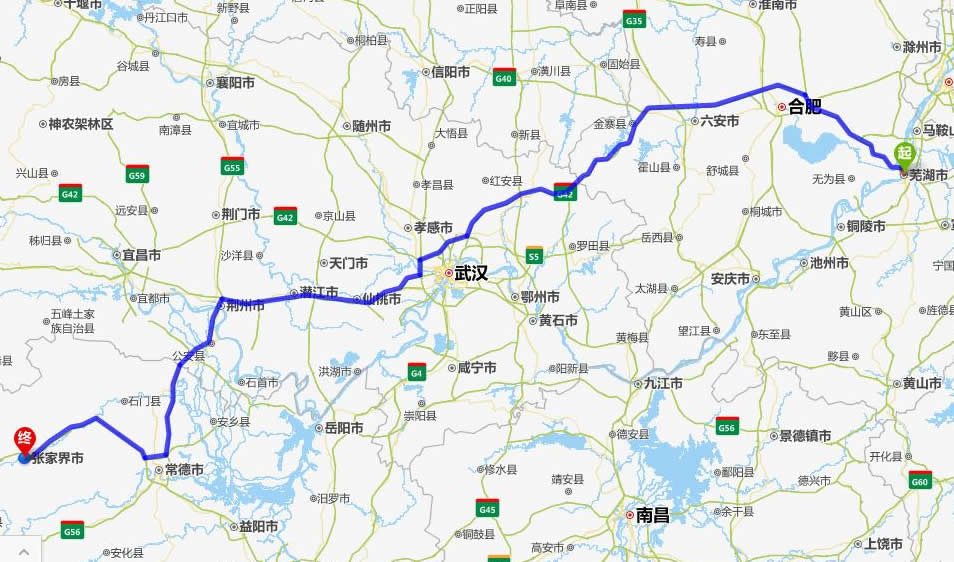 銅陵去張家界自駕車自助游線路圖全程高速):